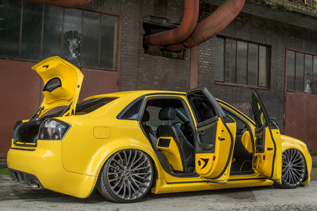 Созданная простейшей А4 1.9 TDI, авто у водителя года была неузнаваема. Начиная с мельчайших деталей, таких как псевдоподвеска и 2-турбированный мотор V62,7 л с мощью 560 сил, и завершая системой аудио внутри.