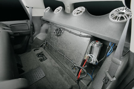 Но основное решение принимали обоснованно. Для фронта была использована компонентная система ММ 6501 из возрождаемой серии Mobile Monitor, которая аналогично, однако коаксиальная ММ 651 была определена на работу в каналы сурраунд (для систем с многоканальным полноценным звучанием это было корректное названием, чем «тыл»). По результата пробного прослушивания, что звучание в салоне «Тахо» хорошо сводится на монитор и без центрального канала, а это позволяет повесить весе главное звучание на один 4-канальный усилитель, в такой ситуации – Polk Audio PA 500.4.