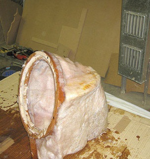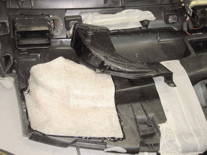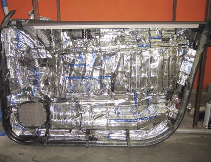 из пены наружных обводов и подгонка под имеющийся динамик и сделана шумоизоляция автомобиля.