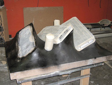 Стадии создания корпусов сабов: основа из стеклопластика, затем – создание